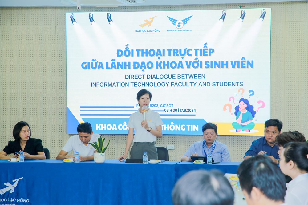 Sáng nay, ngày 17/9/2024, tại phòng B203, Cơ sở 1, Khoa Công nghệ Thông tin, Trường Đại học Lạc Hồng đã tổ chức buổi "Đối thoại giữa Lãnh đạo Khoa/ ngành đào tạo với ban cán sự đại diện sinh viên". Sự kiện nhằm mục đích tạo cơ hội để sinh viên chia sẻ những thắc mắc, khó khăn trong quá trình học tập và phát triển tại trường, đồng thời đưa ra những giải pháp hỗ trợ sinh viên tốt hơn.