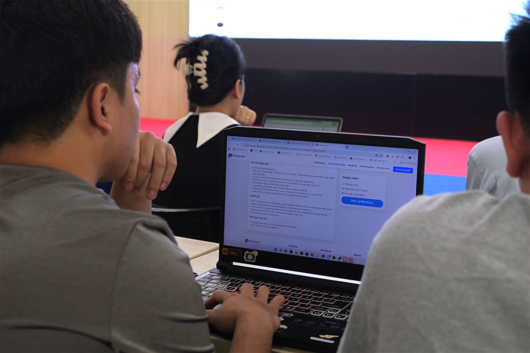 Điểm nhấn đặc biệt của chương trình là hoạt động thực hành trực tiếp tại workshop. Sinh viên được hướng dẫn thao tác ngay trên nền tảng Haravan, từ quản lý sản phẩm, theo dõi đơn hàng, xử lý kênh bán hàng đến chăm sóc khách hàng, giúp các bạn có trải nghiệm thực tế về quy trình vận hành mô hình kinh doanh đa kênh.