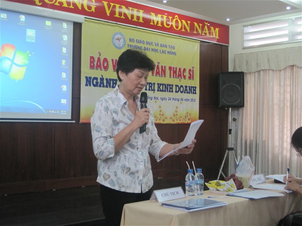 Sáng ngày 24/6/2012, Trường Đại học Lạc Hồng đã tổ chức cho các anh chị học viên ngành Quản trị kinh doanh khóa 2 bảo vệ luận văn trước hội đồng. Buổi bảo vệ được chia thành 2 phiên làm việc, buổi sáng có 6 học viên và buổi chiều có 3 học viên. Các học viên báo cáo trong phiên buổi sáng: Hoàng Thị Thanh Chung, Mai Văn Hiền, Vũ Tô Hiệu, Nguyễn Văn Khái, Đăng Quang Minh, Tống Duy Khương