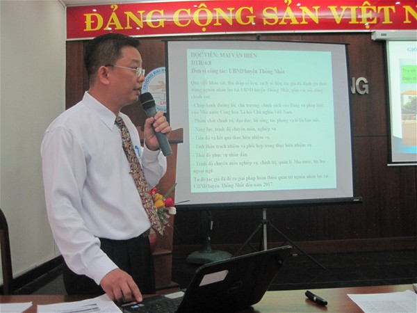Các anh chị học viên ban đầu có phần hồi hộp trong lúc báo cáo nhưng sau đó đã tự tin khi trả lời những câu hỏi chuyên môn từ phía các thành viên hội đồng. Một số học viên đã trả lời xuất sắc các câu hỏi từ thành viên hội đồng và được các Thầy Cô đánh giá tốt về khả năng am hiểu đề tài, thu thập và xử lý số liệu đề tài đạt yêu cầu của luận văn thạc sĩ.