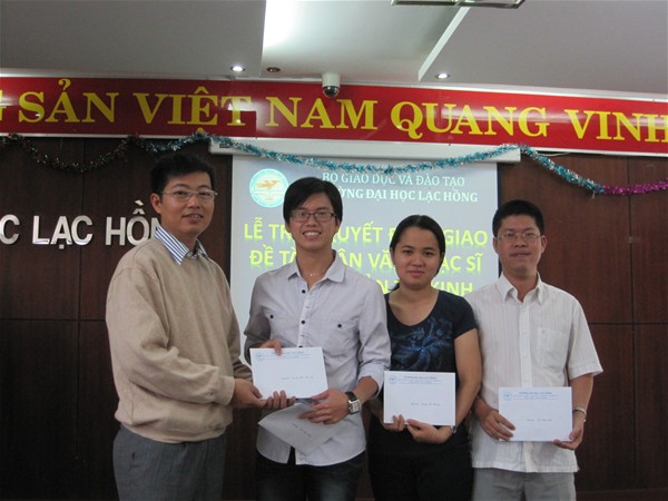 Căn cứ kết quả đánh giá của hội đồng từ buổi định hướng đề tài, vào ngày 28/12/2013, tại phòng B203 Trường đã tổ chức buổi lễ trao quyết định giao đề tài cho 24 học viên đã có kết quả đạt từ buổi định hướng. TS. Nguyễn Văn Tân - Trưởng phòng Sau đại học, kiêm Trưởng khoa Quản trị - Kinh tế quốc tế đã thay mặt Nhà trường trao quyết định giao đề tài cho các học viên nói trên.