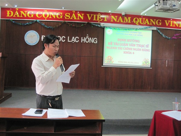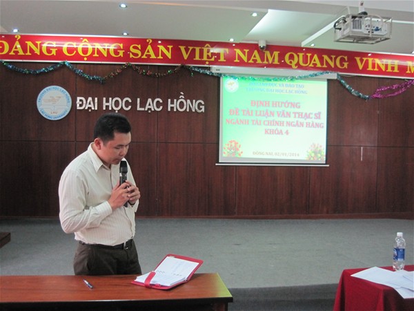 Buổi sáng thứ năm ngày 02/01/2014, tại phòng B203, Trường Đại học Lạc Hồng đã tổ chức buổi định hướng đề tài luận văn thạc sĩ cho các học viên ngành Tài chính ngân hàng khóa 4 năm 2012.
