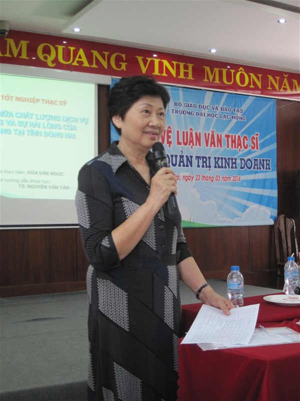 Sáng ngày 23/3/2014, Trường Đại học Lạc Hồng tổ chức Lễ bảo vệ luận văn thạc sĩ chuyên ngành Quản trị kinh doanh cho 12 học viên cao học của Trường. Đến tham dự buổi bảo vệ luận văn thạc sĩ gồm có các thầy cô trong hội đồng đánh giá như PGS.TS Nguyễn Thị Liên Diệp, PGS.TS  Hồ Tiến Dũng, TS Nguyễn Văn Tân, TS Tạ Thị Kiều An, TS Mai Thanh Loan, TS Ngô Quang Huân cùng các anh chị học viên chuyên ngành Quản trị kinh doanh của các khóa 2009, 2010 và 2011.