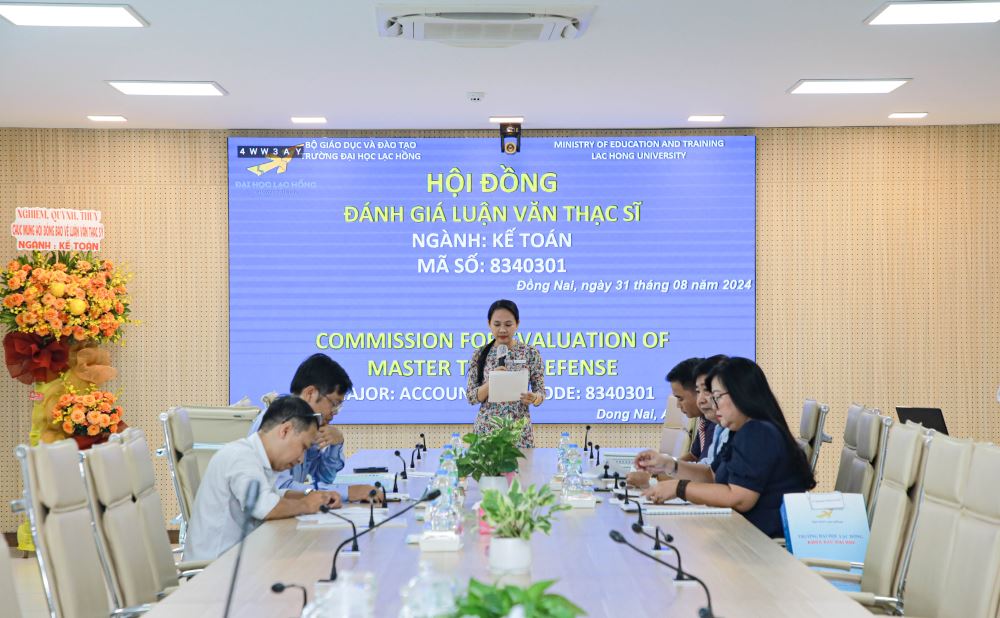 Hôm nay, ngày 31 tháng 8 năm 2024, tại phòng họp cơ sở 1 của Trường Đại học Lạc Hồng (LHU), 13 học viên ngành Kế toán đã xuất sắc hoàn thành và bảo vệ thành công luận văn thạc sĩ của mình. Buổi bảo vệ diễn ra trong không khí trang trọng và đầy tính học thuật, đánh dấu một bước ngoặt quan trọng trong hành trình học tập và nghiên cứu của các học viên.
