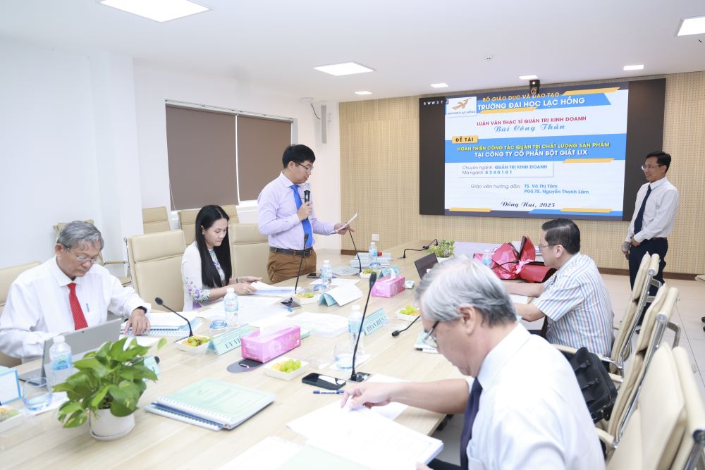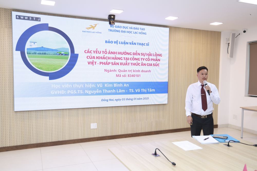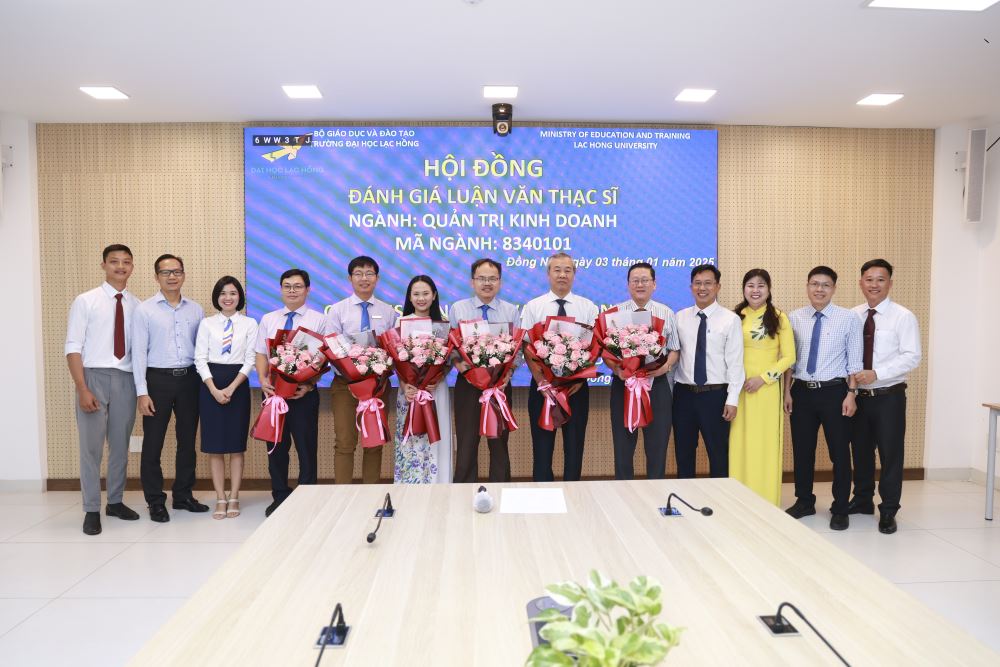 Ngày 03 tháng 01 năm 2025, tại phòng họp cơ sở 1 của Trường Đại học Lạc Hồng (LHU),  09 học viên ngành Quản trị kinh doanh đã xuất sắc hoàn thành và bảo vệ thành công luận văn thạc sĩ của mình. Buổi bảo vệ diễn ra trong không khí trang trọng và đầy tính học thuật, đánh dấu một bước ngoặt quan trọng trong hành trình học tập và nghiên cứu của các học viên.