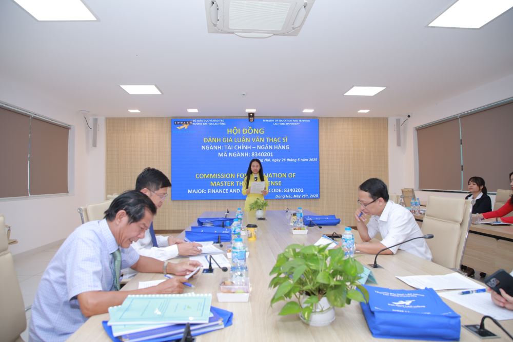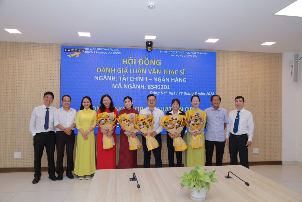 Vào ngày 26 tháng 5 năm 2025, tại phòng họp cơ sở 1 của Trường Đại học Lạc Hồng, 05 học viên ngành Tài chính – Ngân hàng đã hoàn thành bảo vệ luận văn thạc sĩ. Buổi bảo vệ diễn ra trong không khí trang trọng và đầy tính học thuật, đánh dấu một bước ngoặt quan trọng trong hành trình học tập và nghiên cứu của các học viên.