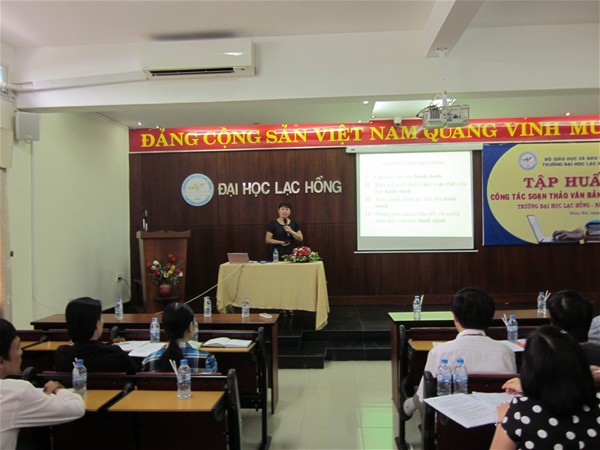 Với mục đích bồi dưỡng và hoàn thiện về kỹ năng soạn thảo văn bản cho toàn thể cán bộ, nhân viên Trường Đại học Lạc Hồng; Ban Chấp hành Công đoàn đã phối hợp với Phòng Thanh tra giáo dục Trường Đại học Lạc Hồng để tổ chức lớp Tập huấn về kỹ năng soạn thảo văn bản hành chính vào ngày 13/04/2012 vừa qua tại phòng B203 (cơ sở 01).