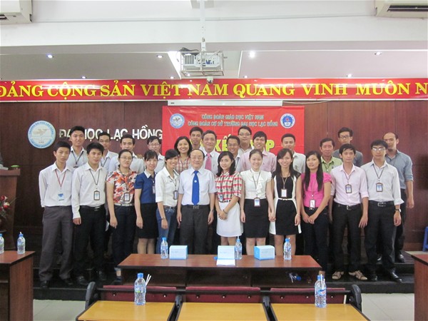 Tham dự buổi Lễ có sự hiện diện của TS. Diệp Cẩm Thu – Chủ tịch Công đoàn, TS. Nguyễn Văn Nam – Phó Chủ tịch Công đoàn, quý Thầy Cô đại diện cho BCH Công đoàn ,Tổ trưởng Công đoàn và 33 công đoàn viên được kết nạp đợt 01 – năm 2013.