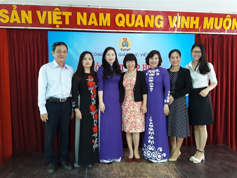 Cán bộ Công đoàn trường Đại học Lạc Hồng chụp hình lưu niệm cùng đại biểu Công đoàn ngành giáo dục