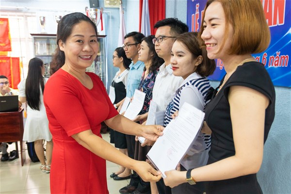 Cô Lê Thị Thu Hương - Chủ tịch Công đoàn trao Quyết định kết nạp cho CĐV mới
