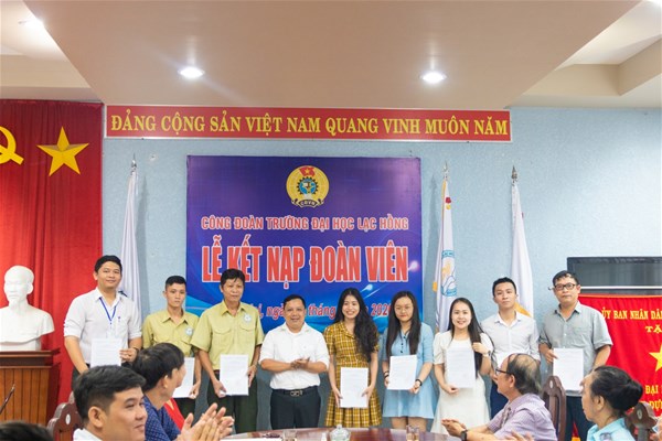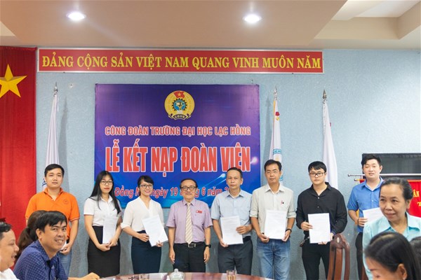Sáng ngày 19/6/2020, Ban Chấp hành Công đoàn Cơ sở trường Đại học Lạc Hồng đã trang trọng tổ chức lễ kết nạp Đoàn viên Công đoàn cho 22 Nhà giáo người lao động (NGNLĐ) Nhà trường. Đến tham dự buổi lễ có TS. Lê Thị Thu Hương - Ủy viên Ban Chấp hành CĐGDVN, Chủ tịch Công đoàn Cơ sở Nhà trường; TS. Diệp Cẩm Thu - Phó Hiệu trưởng, Nguyên Chủ tịch Công đoàn CS nhiệm kỳ V (2014 - 2019); Ths. Đặng Đại Hùng - Phó Chủ tịch CĐCS, các Ủy viên BCH Công đoàn; các Tổ trưởng Công đoàn cùng các cá nhân được xét kết nạp Đoàn viên Công đoàn (đợt 1 năm 2020).