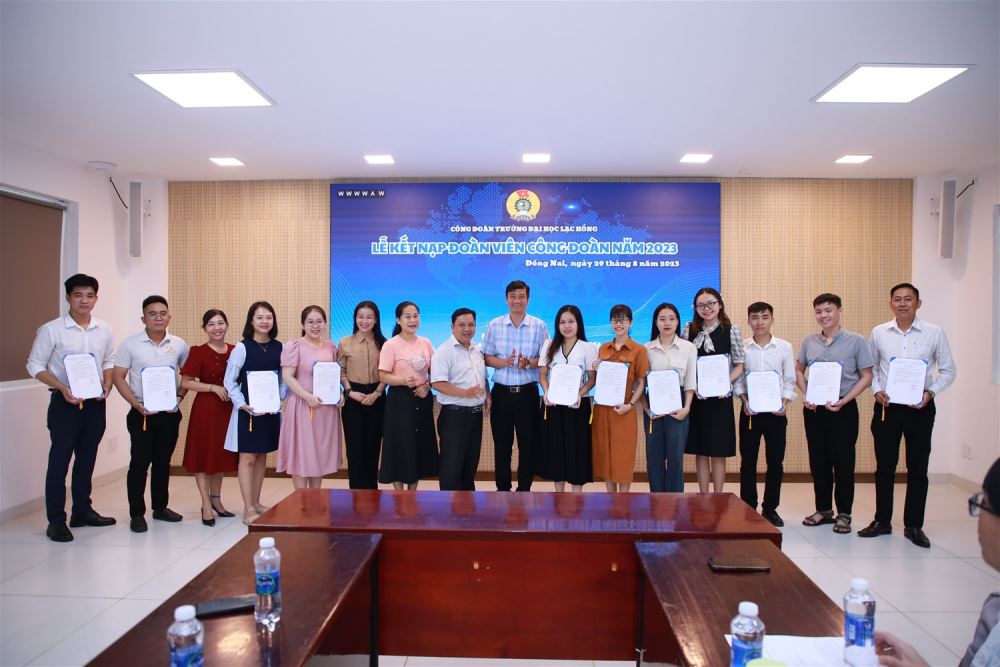 Tham dự buổi lễ kết nạp đoàn viên Công đoàn, có PGS TS Nguyễn Vũ Quỳnh – Phó Hiệu trưởng Trường Đại học Lạc Hồng; TS Lê Thị Thu Hương – Chủ tịch Công đoàn khóa VI –  Ủy viên BCH – CĐGDVN; ThS Đặng Đại Hùng – Chủ tịch Công đoàn; ThS Trần Thị Thiên Thanh – Phó Chủ tịch Công đoàn, các đồng chí trong BCH Công đoàn, các đồng chí là Tổ trưởng, Tổ phó Công đoàn trực thuộc và 16 đồng chí NGNLĐ mới tuyển dụng.