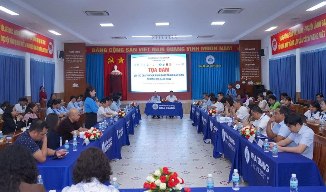 Sáng ngày 17 tháng 7 năm 2025 tại Trường Đại học Nha Trang, Chương trình Tọa đàm với chủ đề: “Vai trò của Tổ chức Công đoàn trong xây dựng trường học hạnh phúc”, cùng các nội dung thảo luận, chia sẻ kinh nghiệm thực tế trong hoạt động của Khối thi đua số 04 năm 2025 .