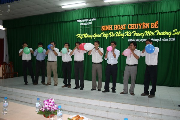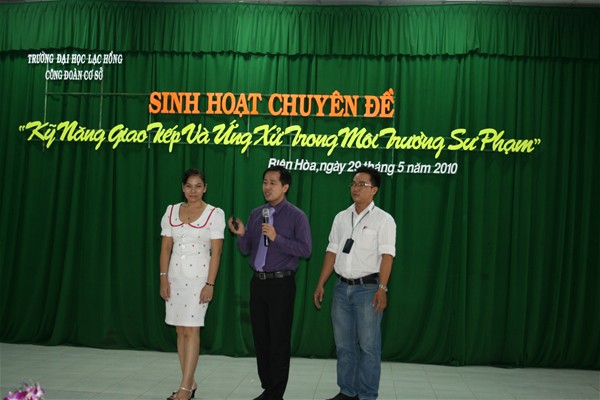 Sáng ngày 29/05/2010, tại phòng A301 Công đoàn cơ sở Trường Đại học Lạc Hồng đã tổ chức buổi sinh hoạt chuyên đề " KỸ NĂNG GIAO TIẾP ỨNG XỬ TRONG MÔI TRƯỜNG SƯ PHẠM"  do TS.Huỳnh Văn Sơn – Trưởng Khoa Tâm lý – ĐH Sư phạm TP. Hồ CHí Minh hướng dẫn.