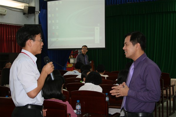 Buổi sinh hoạt chuyên đề diễn ra trong không khí vô cùng sôi nổi với cách dẫn dắt  thu hút và cũng không kém phần dí dỏm của TS.Huỳnh Văn Sơn. TS.Huỳnh Văn Sơn đã chia sẻ những kinh nghiệm của mình trong quá trình giảng dạy và làm việc tại một số trường đại học và cơ quan. Theo đó, TS. Huỳnh Văn Sơn cho rằng “nụ cười” là thứ đóng vai trò vô cùng quan trọng trong giao tiếp. Chỉ cần bạn chủ động cười và bắt chuyện với đối phương, bạn sẽ được đáp lại bằng một nụ cười và việc giao tiếp sẽ được bắt đầu dễ dàng hơn. Ngoài ra , TS Sơn còn chia sẻ nhiều tình huống sư phạm rất có giá trị cho mọi người .