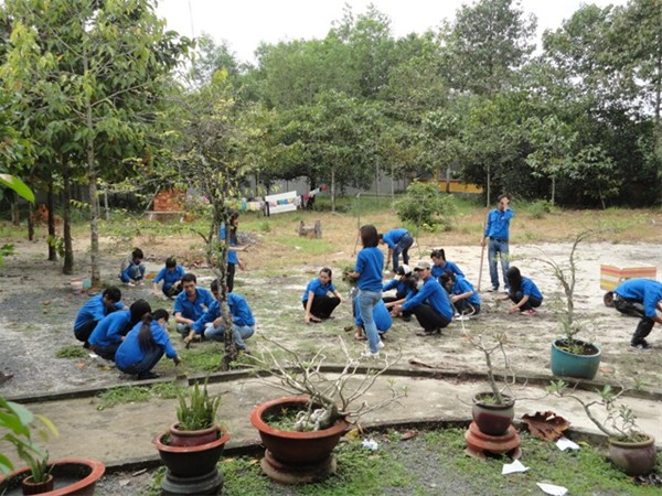 Toàn đội dọn dẹp vệ sinh quanh nhà tình thương