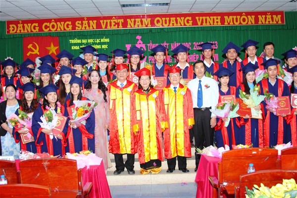 Tân cử nhân trườngcủa khoa Đông Phương học chụp hình lưu niệm với Ban Giám hiệu Nhà trường