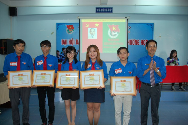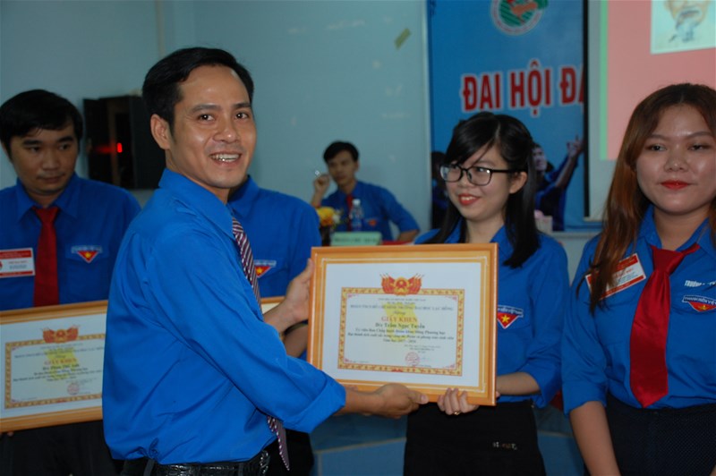 Đ/c Trần Tiến - Phó Bí thư Đoàn trường trao giấy khen cho cá nhân có thành tích xuất sắc