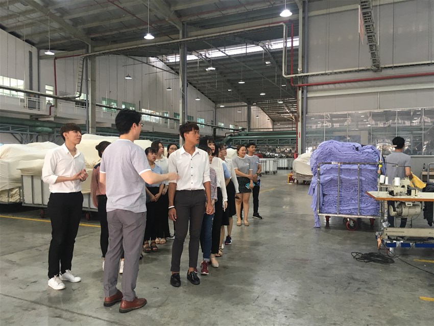 Sau buổi tọa đàm, sinh viên đã đi tham quan Nhà máy vải sợi của Công ty và được quan sát thực tế các công đoạn sản xuất: từ  nguyên liệu vải thô – qua khâu nhuộm –khâu in – khâu kiểm tra chất lượng - cuối cùng là đóng gói rồi nhập kho thành phẩm chờ tiêu thụ theo đơn đặt hàng của khách.