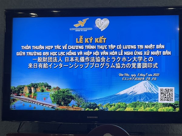 Chiều 05.7.2022, Trường Đại học Lạc Hồng đã có buổi ký kết ghi nhớ hợp tác (MOU) với Hiệp Hội Văn Hóa Lễ Nghi Ứng Xử Nhật Bản. Buổi ký kết được đánh giá là một sự kiện quan trọng, mở ra thời kỳ mới cho quan hệ hợp tác giữa hai đơn vị, đưa đến những cơ hội thực tập có lương tại Nhật Bản cho không chỉ sinh viên ngành Nhật Bản học mà còn cho sinh viên của toàn trường.
