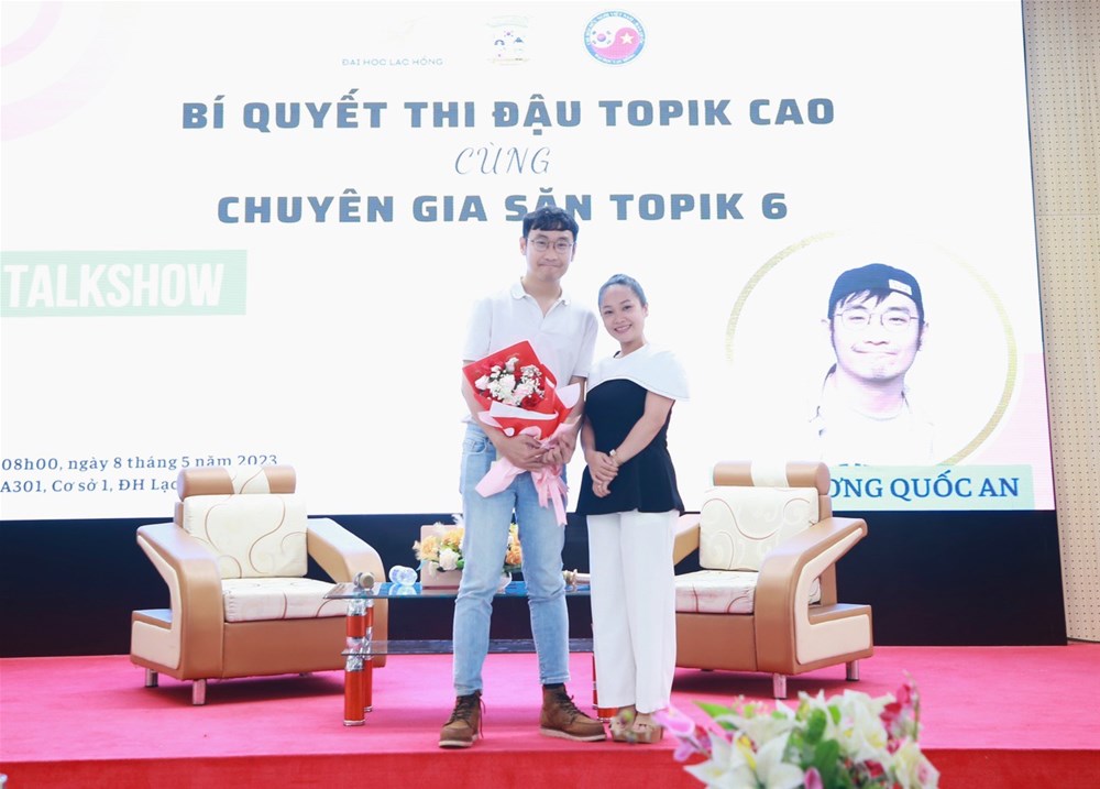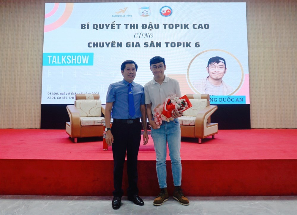 Trong buổi Talkshow này, Th.S Lương Quốc An đã chia sẻ đến các bạn sinh viên ngành Hàn Quốc học, Trường ĐH Lạc Hồng những kinh nghiệm vô cùng hữu ích để có thể giải quyết 3 phần thi Nghe - Viết - Đọc trong bộ đề thi đánh giá năng lực tiếng Hàn TOPIK.