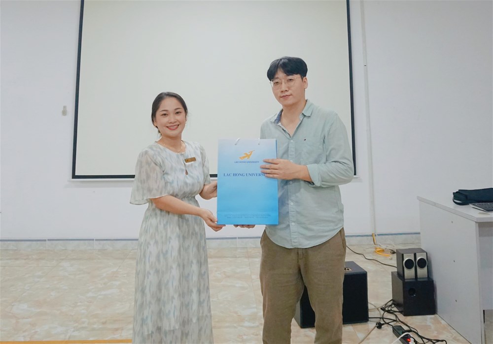 Ngành Hàn Quốc học tặng quà lưu niệm đến đại diện Công Ty TNHH Global Dyeing