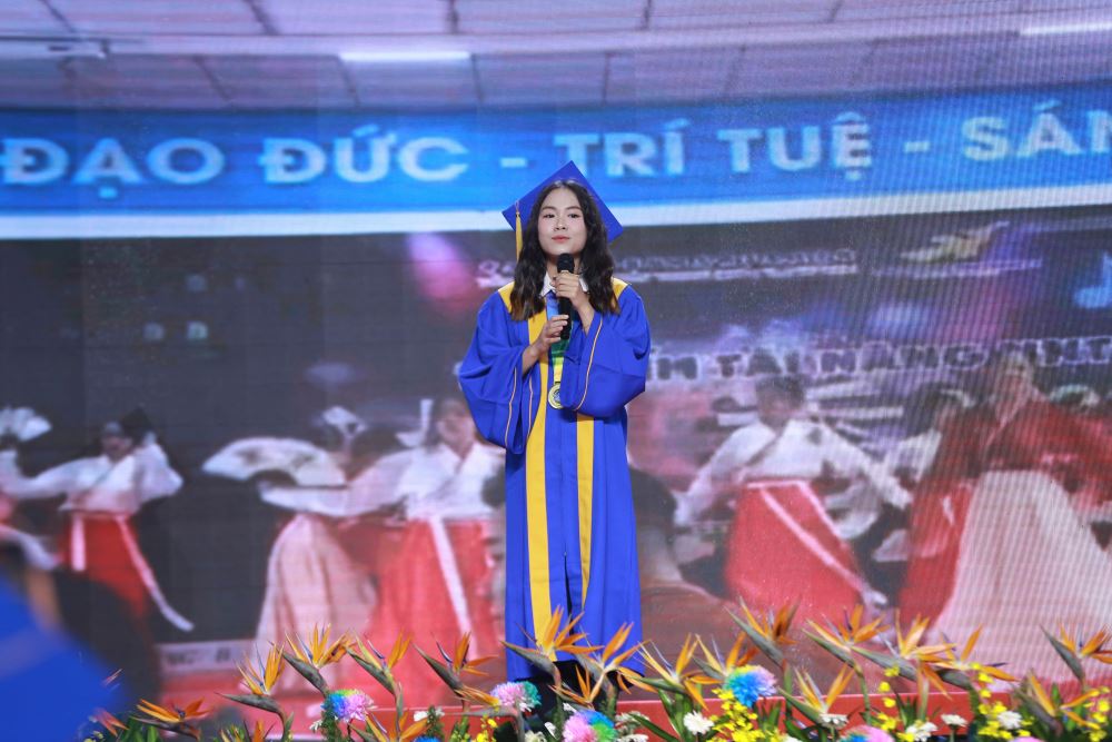 Tân Cử nhân Nguyễn Thị Yến Linh - Lớp 20DT112 - Đại diện tập thể sinh viên phát biểu cảm nghĩ