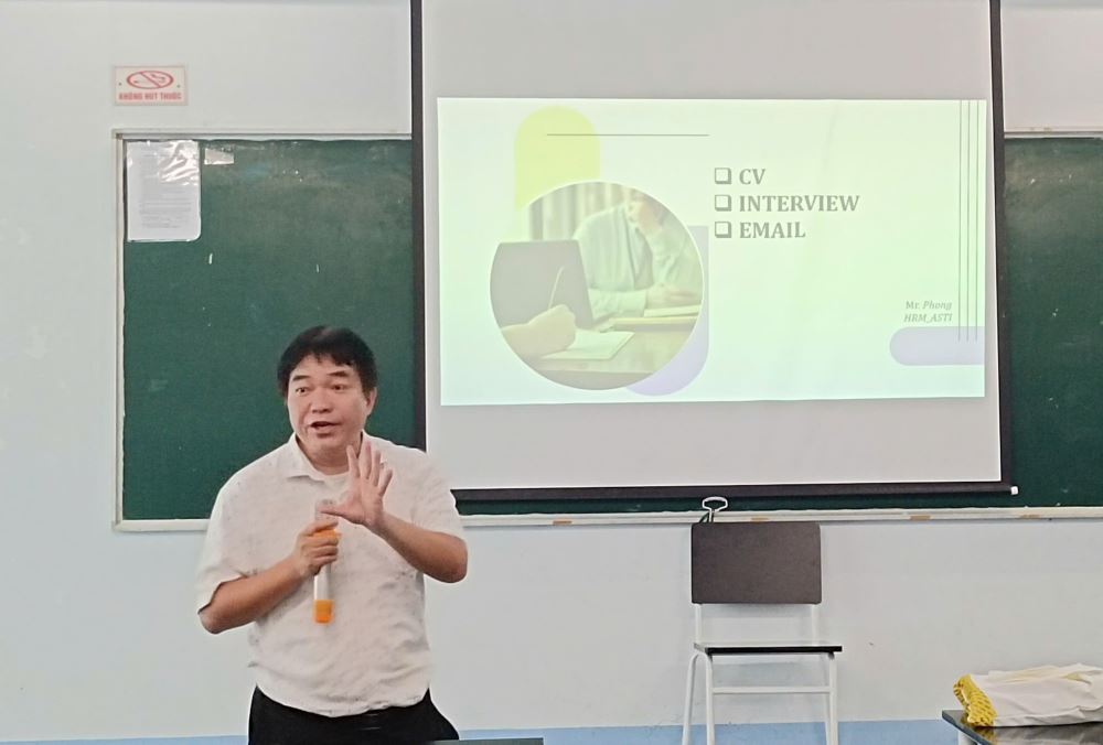 Về phía khách mời, ông Nguyễn Thanh Phong – Trưởng phòng Nhân sự Công ty TNHH ASTI kiêm thành viên Ban cố vấn doanh nghiệp Khoa Đông Phương học, đã giới thiệu cụ thể về cách thức viết CV theo tiêu chuẩn của doanh nghiệp Nhật Bản, sửa một số lỗi thường gặp trong quá trình viết hồ sơ, viết mail.