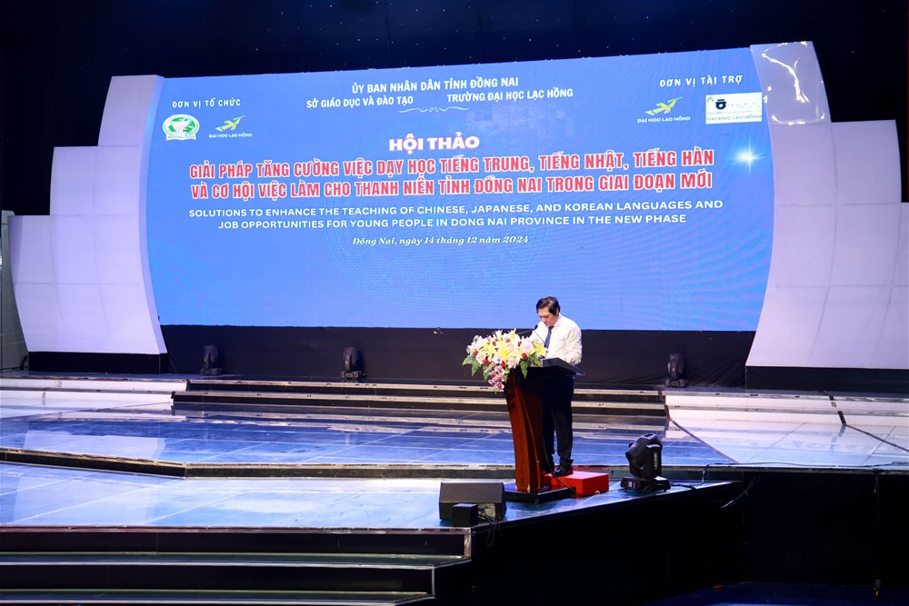 Sáng ngày 14/12/2024, tại Đài Phát thanh Truyền hình Đồng Nai, hội thảo cấp tỉnh với chủ đề “Giải pháp tăng cường việc dạy học tiếng Trung, Nhật, Hàn và cơ hội làm cho thanh niên Tỉnh Đồng Nai trong giai đoạn mới” đã được tổ chức thành công. Sự kiện diễn ra dưới sự chỉ đạo của UBND tỉnh Đồng Nai, với sự phối hợp của Trường Đại học Lạc Hồng (LHU), Sở Giáo dục và Đào tạo - đơn vị chủ trì, cùng Sở Lao động - Thương binh và Xã hội, Sở Ngoại vụ, Hội Hữu nghị Việt Nam - Hàn Quốc và nhiều cơ quan, đơn vị liên quan.