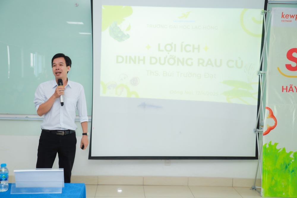 Sáng thứ Bảy, ngày 12/4/2025 tại cơ sở 1 – Đại học Lạc Hồng, sự kiện “Workshop dinh dưỡng Salad First” đã diễn ra sôi nổi với sự phối hợp tổ chức giữa Khoa Đông Phương học và Khoa Khoa học Công nghệ và Thực phẩm. Đặc biệt, chương trình hân hạnh chào đón sự tham gia của đơn vị khách mời – Công ty TNHH Kewpie Việt Nam, thương hiệu nổi tiếng với các sản phẩm sốt mayonnaise và thực phẩm chất lượng cao đến từ Nhật Bản.