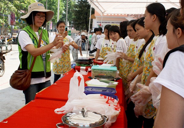 Cô Hwang Jae Youn hướng dẫn sinh viên nấu ăn
