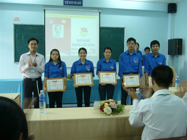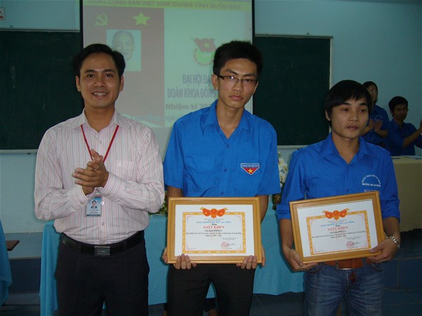 Đ/c Lê Sơn Quang tặng giấy khen cho hai tập thể lớp 09DT111 và 09DN112 đã có thành tích xuất sắc trong tổ chức và tham gia các hoạt động nhiệm kỳ 2009 -2010