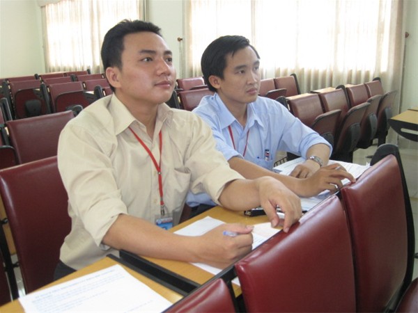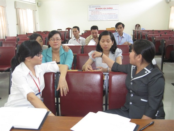 Sáng ngày 3/3/2011 tại phòng B203 Khoa Kế Toán – Kiểm Toán đã tiến hành báo cáo tiến độ Chuẩn bị nghiên cứu khoa học giáo viên. Tham gia nghiên cứu khoa học giáo viên lần 8 năm nay Khoa Kế Toán – Kiểm Toán có 8 đề tài nghiên cứu. Trong đó có 7 đề tài nghiên cứu về xây dựng qui trình kế toán ảo và 1 đề tài Đánh giá tình hình sử dụng phần mềm kế toán MISA SME.NET 2010 tại khoa Kế Toán – Kiểm Toán. Các đề tài lần lượt báo cáo tiến độ hoàn thành và các bước chuẩn bị nhằm hoàn thiện quy trình kế toán ảo. Chuẩn bị các chứng từ liên quan đến các quy trình, mỗi chứng từ chỉ cách nhận dạng và làm kế toán thủ công. (Chỉ ra cách lập và điều kiện để chấp nhận và có thể chỉ ra thời điểm lập (nếu có)). Từ đó, khi sinh viên thực hành trên máy sẽ nhập dữ liệu trên phần mêm excel. Sau đây là một số hình ảnh của buổi báo cáo Thầy Phan Thành Nam trình bày lưu đồ quy trình Kế toán bán hàng - nợ phải thu Các thầy cô theo dõi phần trình bày của các quy trình Kế toán ảo Các thầy cô đóng góp ý kiến cho từng quy trình Các thầy cô chăm chú theo dõi từng phần hành của quy trình