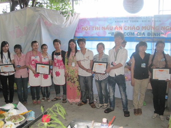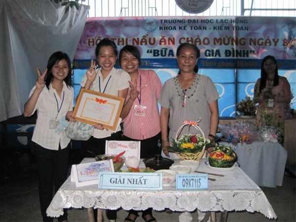Nhằm chào mừng ngày Quốc tế Phụ nữ 08/03. Đoàn – Hội sinh viên khoa  Kế Toán - Kiểm Toán tổ chức cuộc thi nấu ăn với chủ đề “Bữa cơm gia đình”. Đây là cuộc thi được tổ chức hàng năm của Khoa Kế toán - kiểm toán nhằm tôn vinh và biết ơn những người phụ nữ, người mẹ, người chị đã ngày đêm đóng góp sức mình vào công cuộc xây dựng đất nước và cuộc sống gia đình, đặc biệt là những cô giáo đang ngày đêm cống hiến vì sự nghiêp giáo dục Nước nhà. Bên cạnh đó cuộc thi đã tạo một sân chơi lành mạnh cho các sinh viên và giúp cho các sinh viên có tinh thần đoàn kết hơn  sau những giờ học trên giảng đường. Cuộc thi năm nay thu hút 19 đội tham gia dự thi đến từ 19 chi đoàn trong Khoa. Đến dự với hội thi về phía Ban lãnh đạo Khoa có cô Trịnh Thị Huế – Phó trưởng Khoa Kế toán - Kiểm toán và tập thể giáo viên trong Khoa. Về phía Ban Giám Khảo có Cô Phạm Thị Kim Hồng – Giáo viên Trường PTTH Chuyên Lương Thế Vinh, cô Hồ Thị Hải Yến – Trương Ban Nữ công gia chánh Trường ĐH Lạc Hồng, Cô Vưu Thị Thu Thủy – Khoa Kế toán – Kiểm toán. Mặc dù trước khi bắt đầu Hội thi trời mưa rất to, nhưng không khí hào hứng của các đội tham gia Hội thi vẫn sôi nổi. Có những đội đã đến rất sớm để lo chuẩn bị phần thi của đội mình thật tốt. Hội thi đã diễn ra chậm hơn so với kế hoạch do trời gió và mưa rất to, nhưng tất cả các đội đã hoàn thành tốt phần thi của mình.