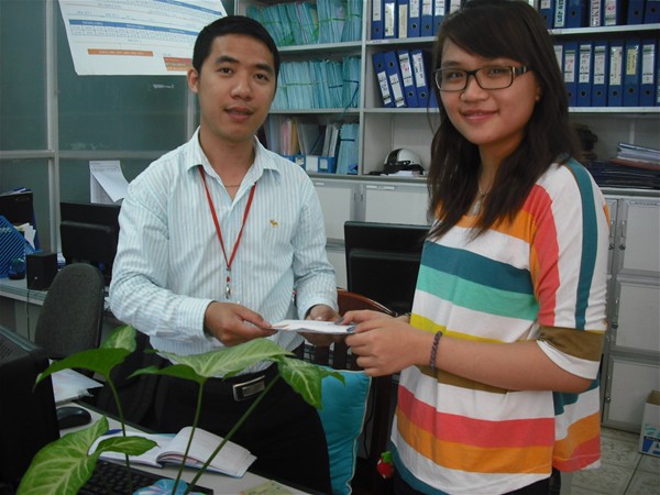 Thầy Phan Thành Nam - Bí thư Đoàn Khoa Nhận tiền ủng hộ từ chi đoàn cơ quan - Công đoàn khoa