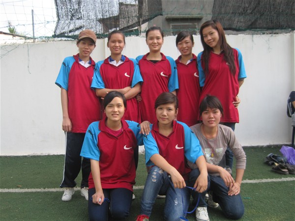 Các cầu thủ nữ xinh đẹp của lớp 08KT117 chụp hình lưu niệm trước khi bắt đầu trận đấu