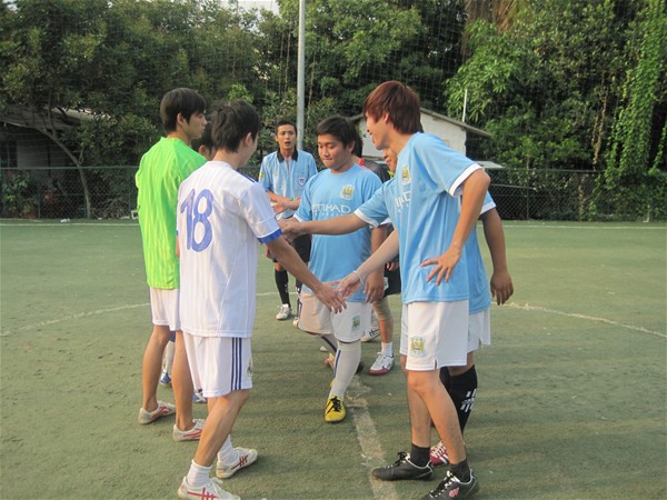 2 đội bóng bắt tay giao hữu trước khi bắt đầu trận đấu