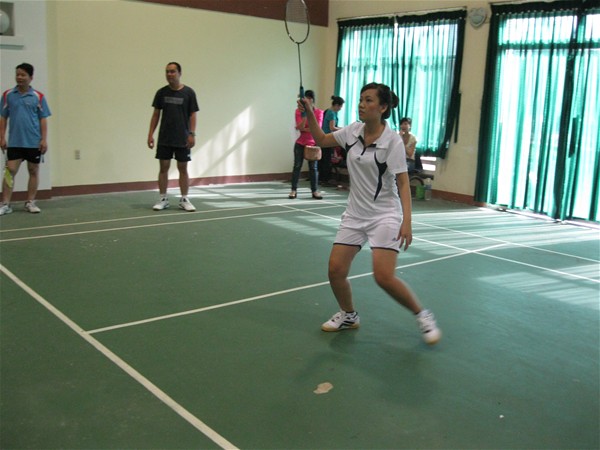 Tay vợt Thanh Hằng của Khoa Ngoại Ngữ đang thi đấu