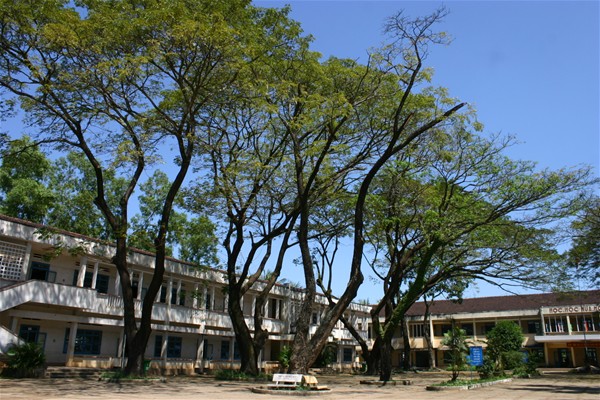 Thầy Nguyễn Văn Dung chụp hình lưu niệm tại trường THPt Số 2 Phù Mỹ