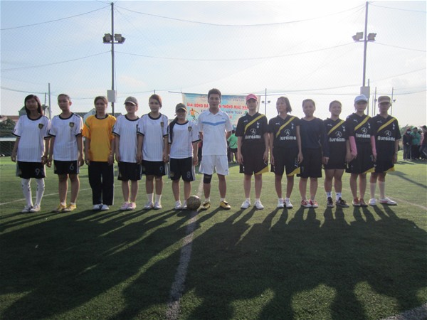 Cô Trịnh Thị Huế trao đạt giải nhì bóng đá nữ 2012 cho Đội 11KT313
