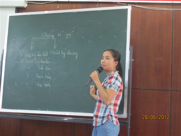 Tham gia báo cáo bài giảng thử có cô Trần Thị Kim Thanh giảng thử môn Kế toán chi phí. Cô Võ Hồng Gấm giảng thử môn Nguyên lý thống kê kinh tế. Cô Nguyễn Thị Thu Hằng giảng thử môn Chứng từ sổ sách và khai báo thuế.
