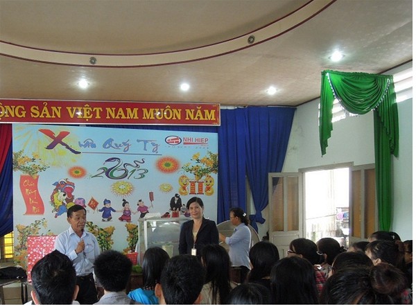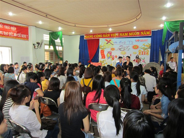 Cô Thu Thủy nhắc nhở các em chấp hành đúng quy định an toàn lao động của công ty