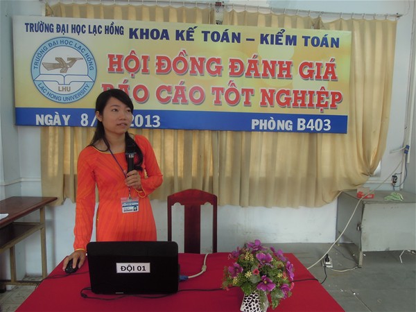 Sáng ngày 08/12/2013, Khoa Kế Toán – Kiểm Toán tổ chức Báo cáo tốt nghiệp cho Khóa 2009 Đêm, 12KT201 và SV thực tập lại hoàn thành quá trình thực tập tốt nghiệp. Do trường Đại Học Lạc Hồng nằm ở vị trí thuận lợi, có hơn 70 khu công nghiệp xung quanh. Nên sinh viên có nhiều điều kiện để tiếp xúc thực tế môi trường làm việc thực tế và áp dụng kiến thức học được tại trường vào công việc tại công ty đi thực tập tốt nghiệp. Sau thời gian 5 tháng thực tập tốt nghiệp tại các doanh nghiệp sinh viên hoàn thành quá trình thực tập tốt nghiệp đã báo cáo trước Hội đồng đánh giá báo cáo tốt nghiệp.