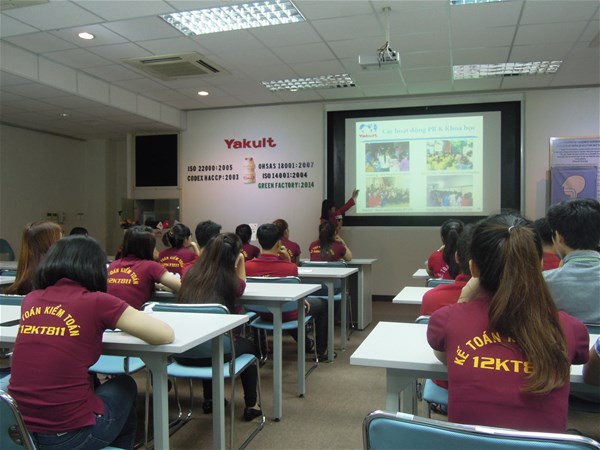 Tại Công Ty, sinh viên đã được Bà  Vũ Thị Hồng Minh – Phòng Tổng vụ Công ty Yakult Việt Nam giới thiệu lịch sử hình thành, quy trình sản xuất kinh doanh, các chế độ chính sách tại công ty.