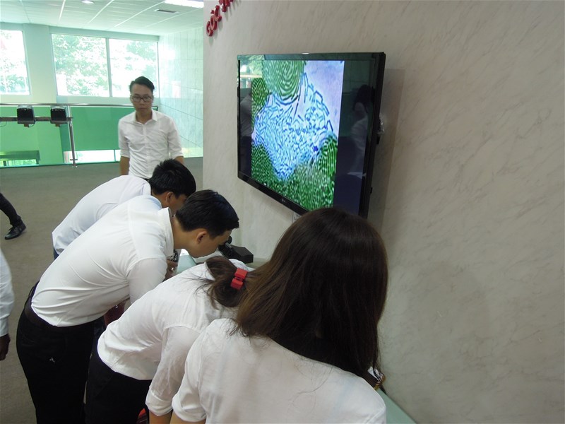 Sau khi tham quan khu lên men và dây chuyền sản xuất của Yakult, dây chuyền được đảm bảo khép kín 100% và rất sạch sẽ, hợp vệ sinh vì sau mỗi giờ làm tất cả các kỹ sư đều vệ sinh máy móc và nơi làm nên các khu sản xuất lúc nào cũng đảm bảo an toàn vệ sinh. Và việc làm chúng em bất ngờ hơn hết đó là ở Yakult không có công nhân, toàn bộ công việc điều do máy móc và khoảng 16 kỹ sư điều hành máy kiêm giám sát quá trình sản xuất. Các kỹ sư ở đây được mặc trang phục kín và trước khi bước vào trong nhà máy thì tất cả mọi người điều phải khử trùng tay bằng cồn 70 độ để đảm bảo an toàn vệ sinh khi vào nhà máy sản xuất và đảm bảo được vệ sinh an toàn thực phẩm ở mức tối đa nhất và cũng nhằm đảm bảo sức khỏe của người tiêu dùng. Mỗi phòng làm việc thì chỉ có khoảng 2 – 3 kỹ sư vì có lẽ như vậy sẽ đảm bảo được chất lượng của công việc và tránh sao nhãng, nói chuyện dẫn đến mất tập trung trong giờ làm.