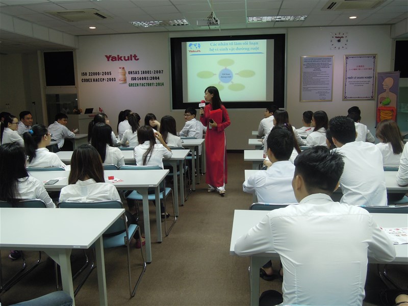 Khi bước chân vào công ty thì chúng em được gặp chị Trinh – chị là người hướng dẫn nhiệt tình và vui vẻ, khi có bạn đặt câu hỏi thì chị giải đáp rất tận tình các thắc mắc và chị còn bổ sung thêm cho chúng em rất nhiều điều bổ ích và có lợi cho sức khỏe của bản thân và gia đình. Và quan niệm của Yakult Việt Nam đó là: “Chúng ta đóng góp cho cuộc sống khỏe mạnh của người dân Việt Nam dựa trên nền tảng của “khoa học sinh mệnh””.