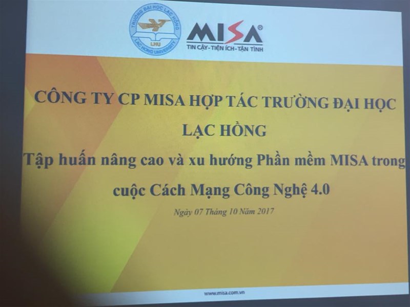 Nhằm kết hợp giữa lý thuyết và thực tiễn, cập nhật kiến thức mới, giao lưu, học tập, chia sẻ kinh nghiệm thực tế các doanh nghiệp, từ đó giúp cho sinh viên không bỡ ngỡ sau khi ra trường làm việc. Sáng ngày 7/10/2017 tại Hội trường I209 - Cơ sở 6 - Trường Đại học Lạc Hồng, Khoa Tài chính - Kế toán kết hợp với Công ty Cổ phần Misa Tổ chức buổi "Tập huấn đào tạo nâng cao phần mềm Misa SME.NET 2017 trước xu thế CM Công nghiệp 4.0 và giải đáp vướng mắc". Các doanh nghiệp, giảng viên và sinh viên học tập nghiêm túc và thảo luận sôi nổi. Sau đay là hình ảnh buổi tập huấn: