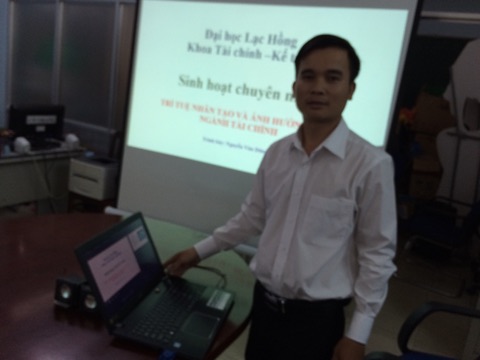 Tham gia trình bày buổi sinh hoạt chuyên môn là thầy Nguyễn Văn Dũng trình bày về nội dung "TRÍ TUỆ NHÂN TẠO VÀ ẢNH HƯỞNG ĐẾN NGÀNH TÀI CHÍNH"