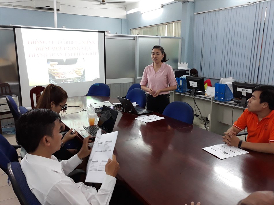 Sáng ngày 4 tháng 10 năm 2018, Khoa Tài chính Kế toán tổ chức buổi sinh hoạt chuyên đề. Đến dự buổi chuyên đề có các Thầy cô trưởng bộ môn và toàn thể thầy cô trong Khoa. Trong buổi sinh hoạt này, Cô ThS. Nguyễn Ngọc Thị Kim Loan đã trình bày Thông tư 19/2018/TT-NHNN – Điểm mới trong việc thanh toán tại biên giới Việt Nam – Trung Quốc với nội dung chính sau:
