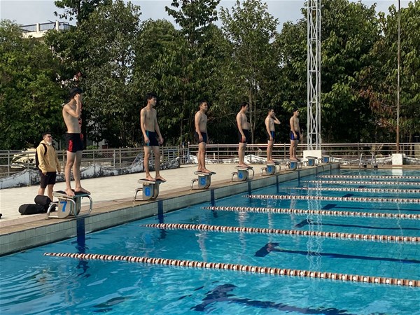 Các thành viên chuẩn bị tham gia thi bơi lội